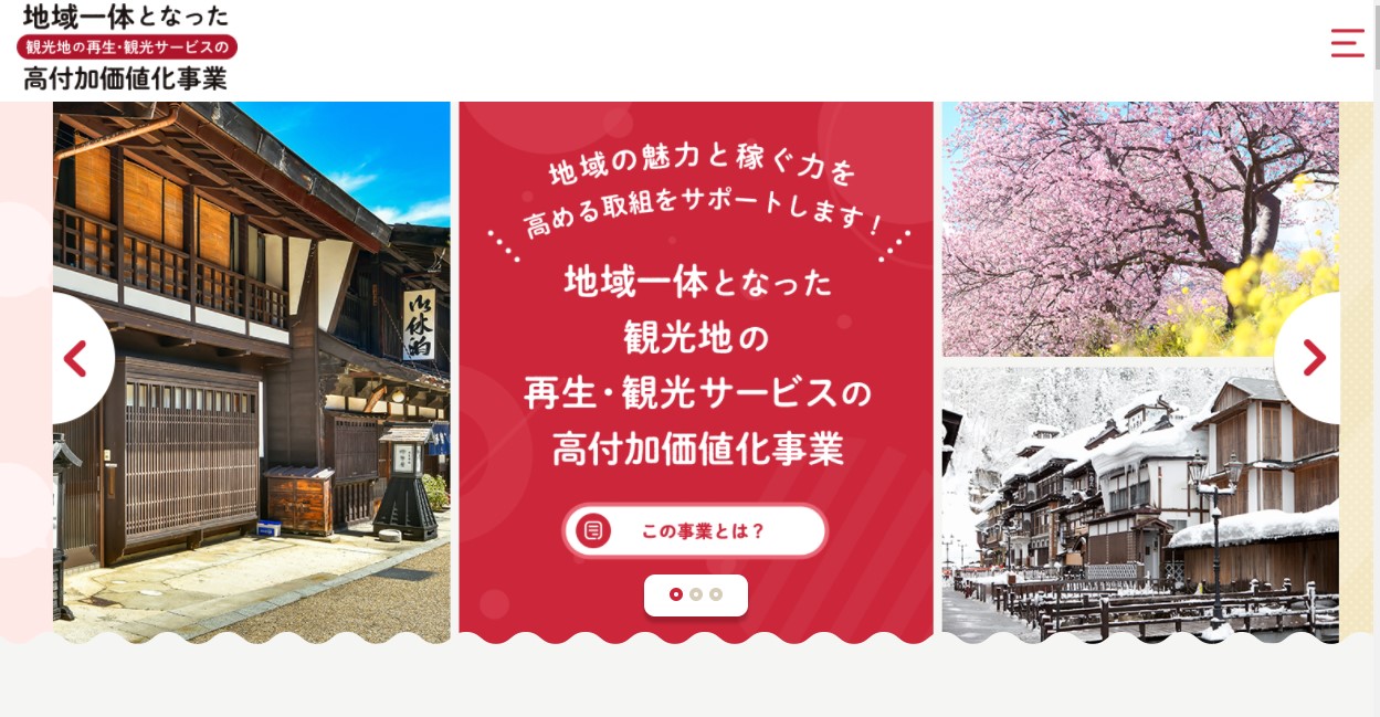 観光庁が公募している補助金事業で、宿泊施設単体ではなく地域全体での活性化をするのが特徴の制度です。