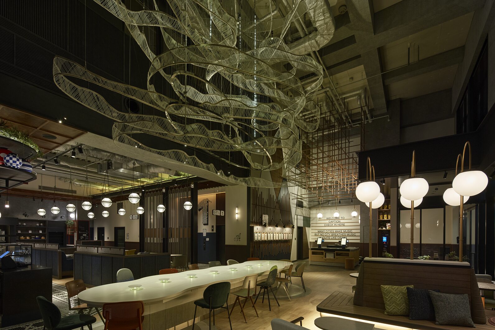 「キャプション by Hyatt」は、ハイアットが2019年に発表した新しいブランドで、地元に密着したカジュアルなライフスタイルホテルです。大阪の中心・難波に位置し、地元のカルチャーに触れることができるホテルとなっています。今回の工事はアート工事という、いつもの内装工事とは違い、図面表現の難しい案件になっておりました。特にクラウドアートに関しては、吹き抜け部に空を表現したアートになっており、照明によって、雷や雨、夜明けなどを表現しております。設計者様の思いを、どのように表現するか試行錯誤の連続でしたが、無事にお引渡しOPENを迎えれました。クラウドアートのあるホテル1階“Talk Shop” は、誰もが飲み物や食べ物を楽しみながら、遊び、旅の計画、散歩の寄り道、仕事にも、いつでも気軽に使えるたまり場のような存在になっています。