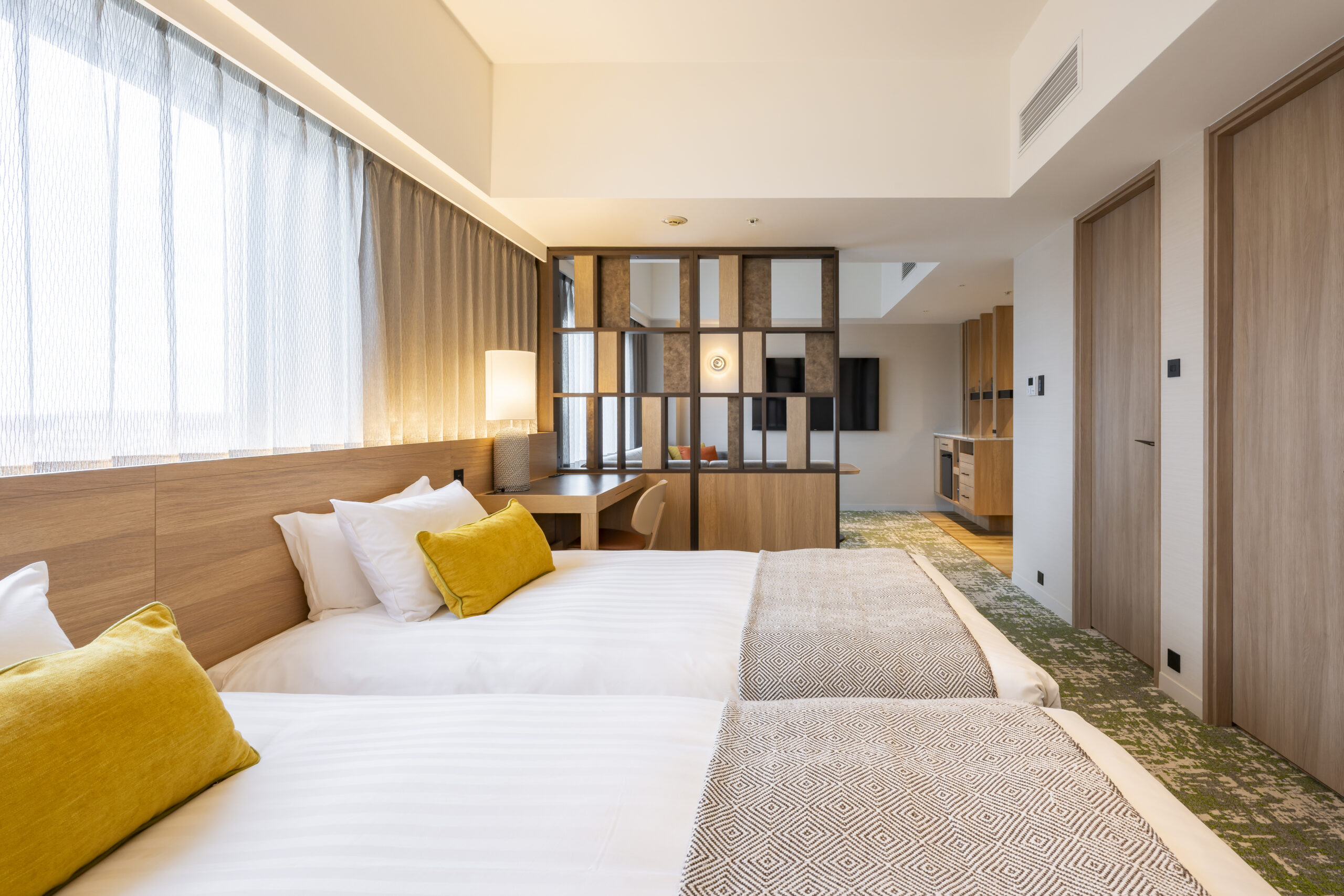 機能性・デザイン性を兼ね備えたナチュラルモダンな客室はゆったりサイズのベッドが時間を忘れさせてくれる居心地の良い空間になっております。