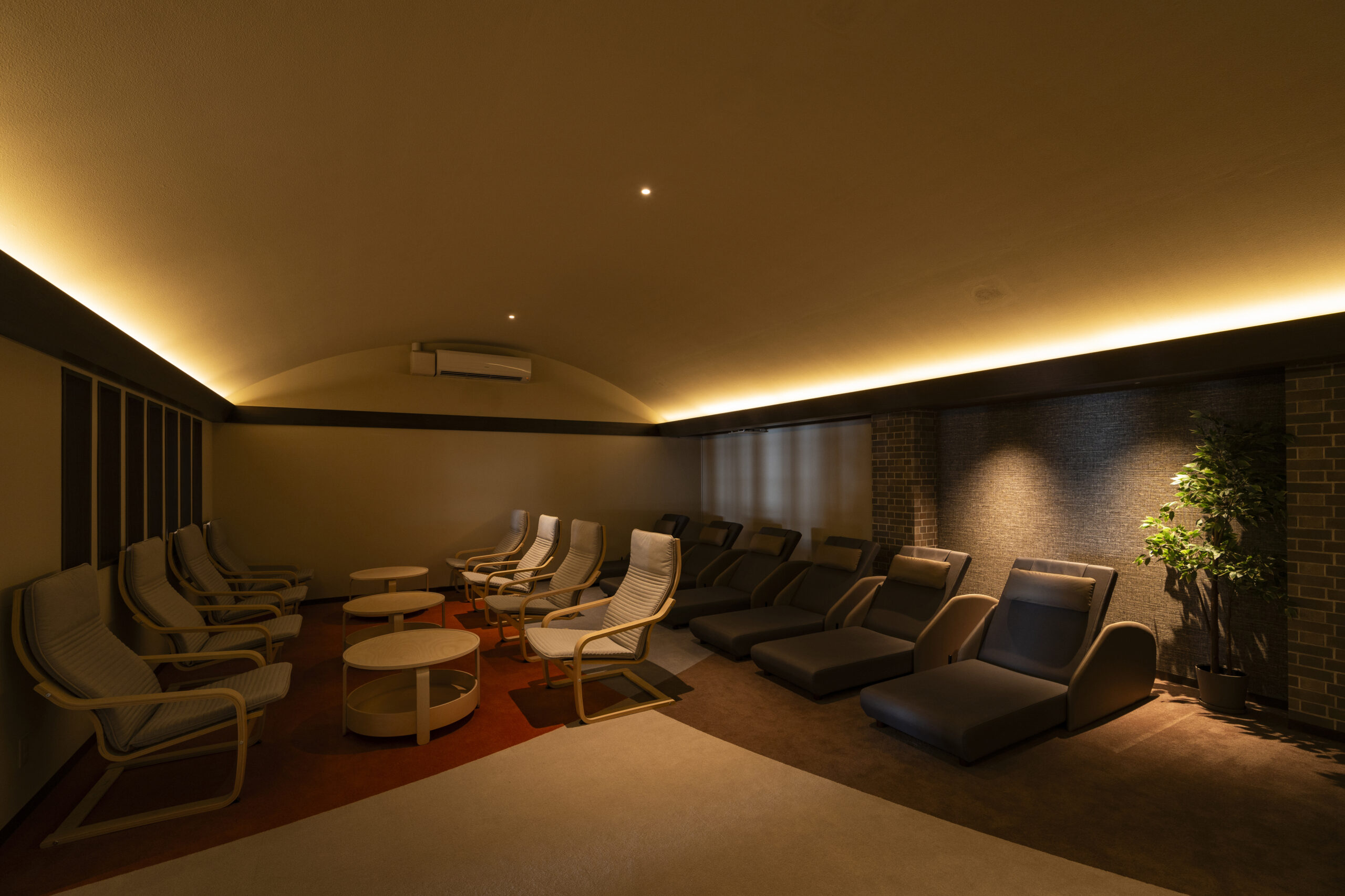 クライアント様の他店での温浴施設の施工実績があり、今回、既存の休憩スペースのリニューアルと使用していない岩盤浴スペースを有効活用をしたいとのことで内装の設計施工のお声がけいただきました。