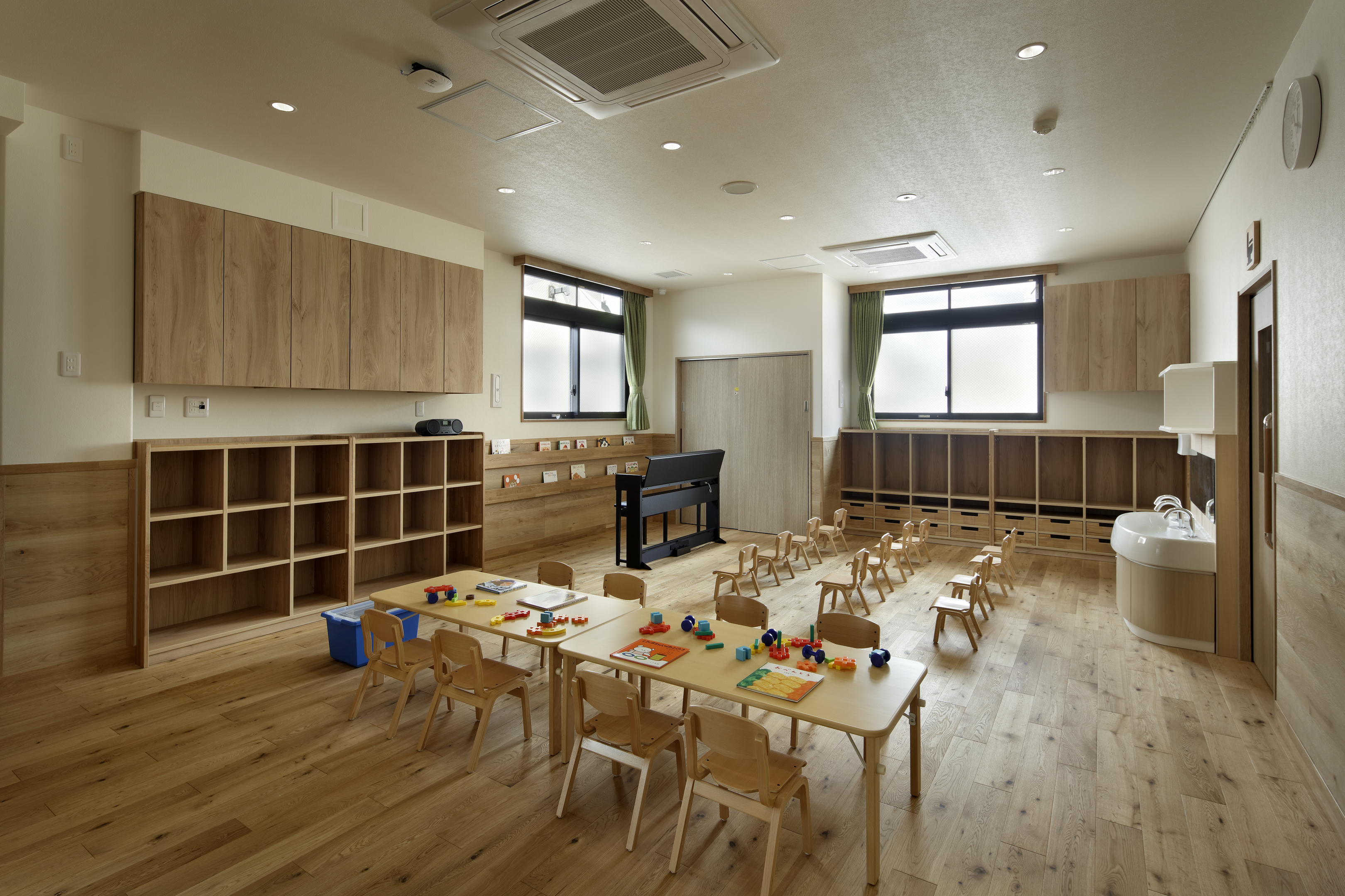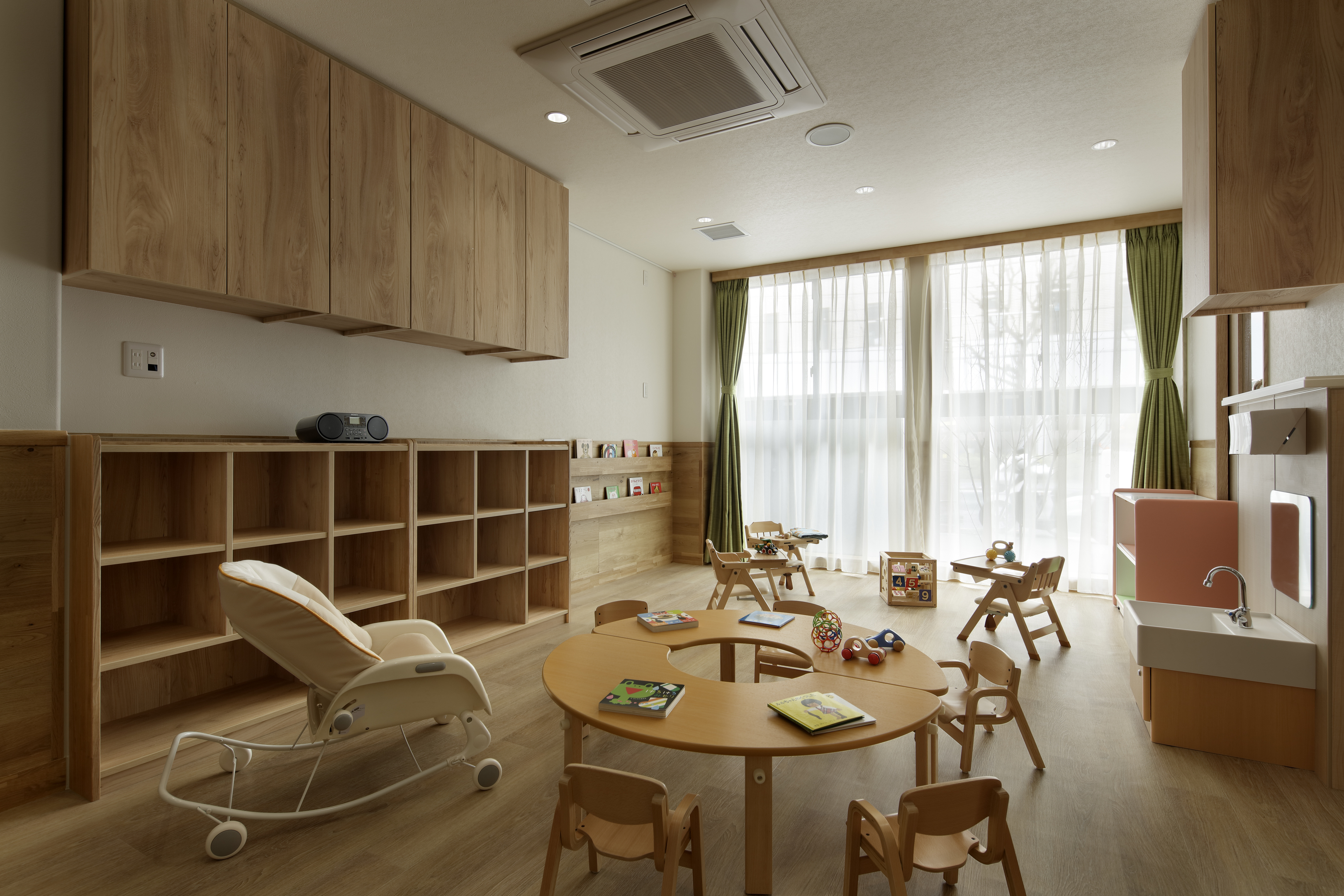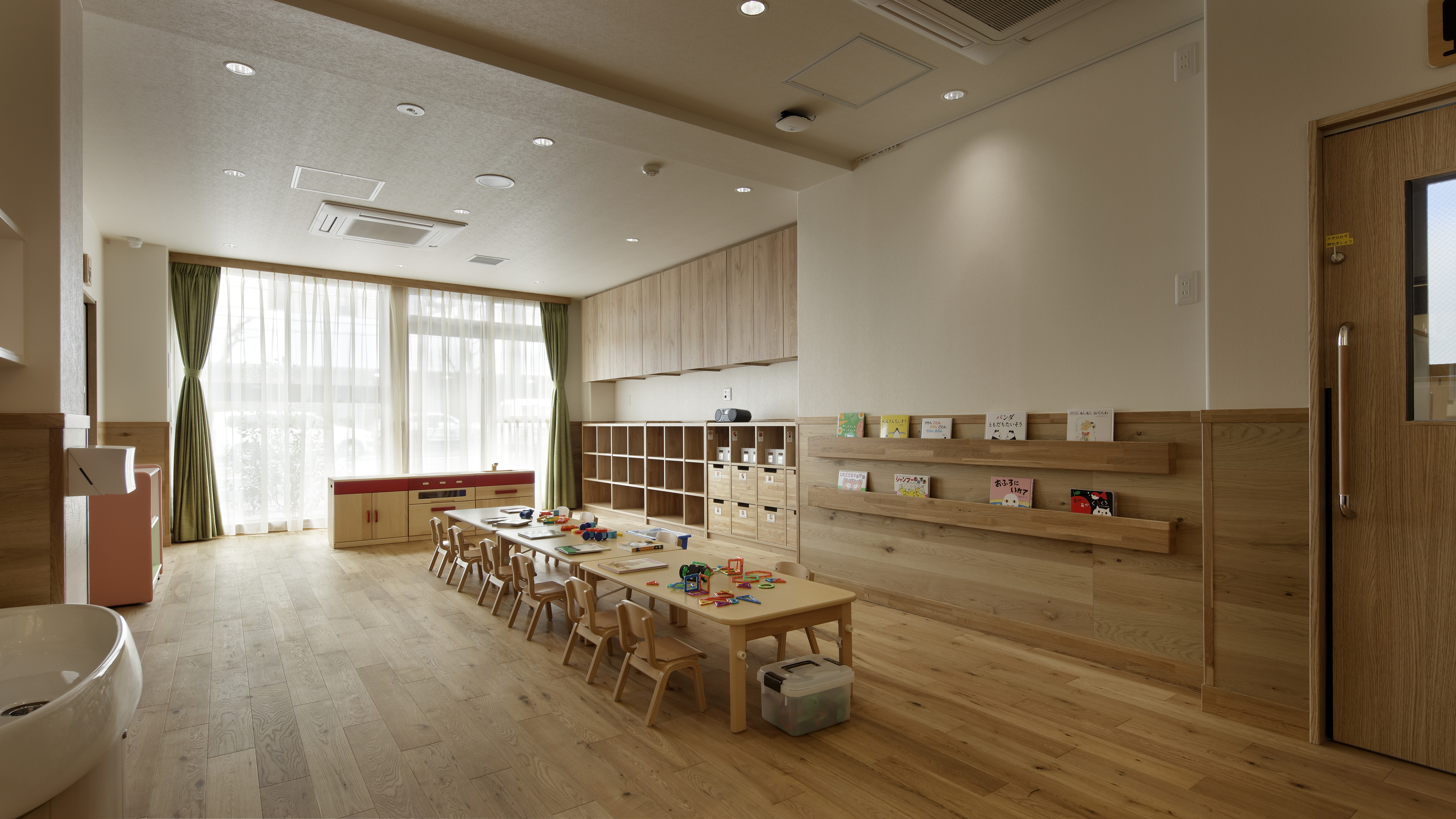 事業主様と設計会社様が希望される、他の保育施設にはない建築物とインテリア、幼児に対する安全対策を実現する為、BL建設株式会社様と現場管理者が綿密な打ち合わせをしてロゴグラフィック・造形など細部にいたるまで地域に親しみやすく愛情を持てることを追求し、完成させました。