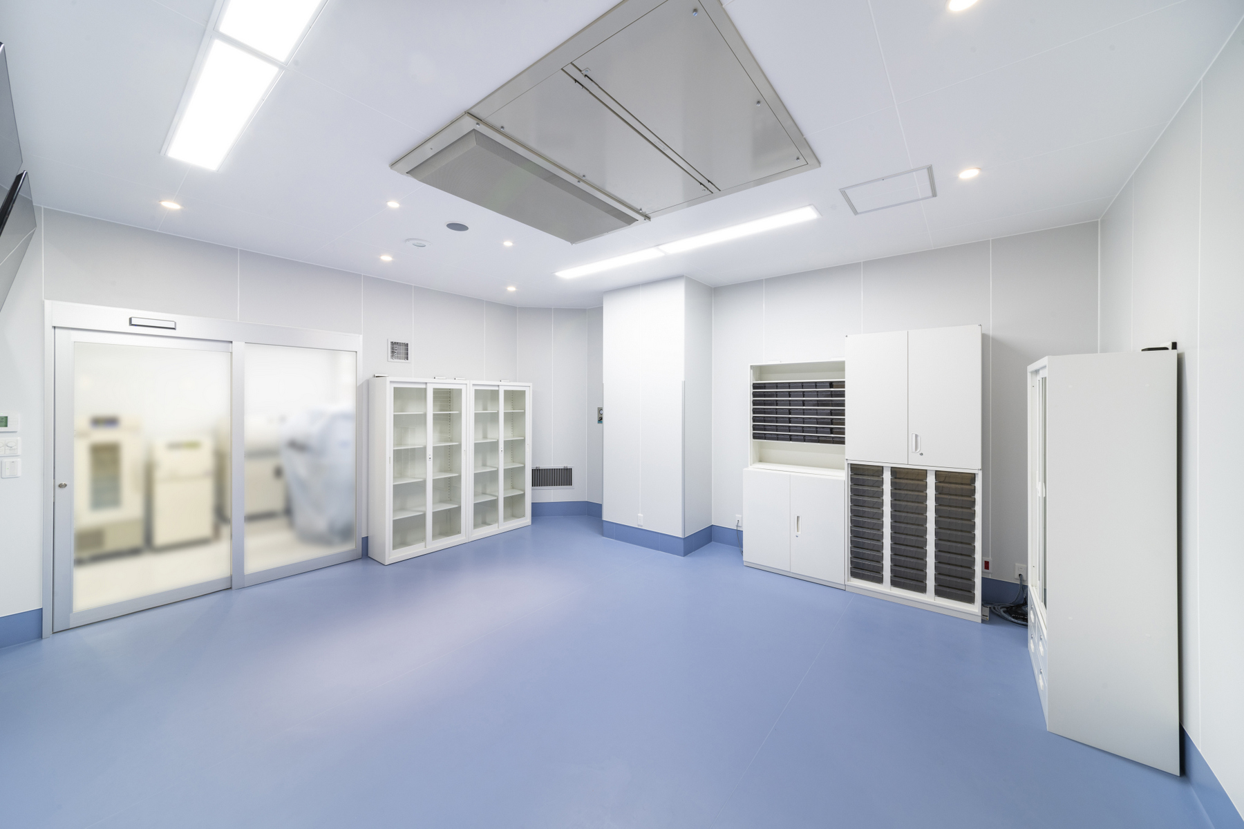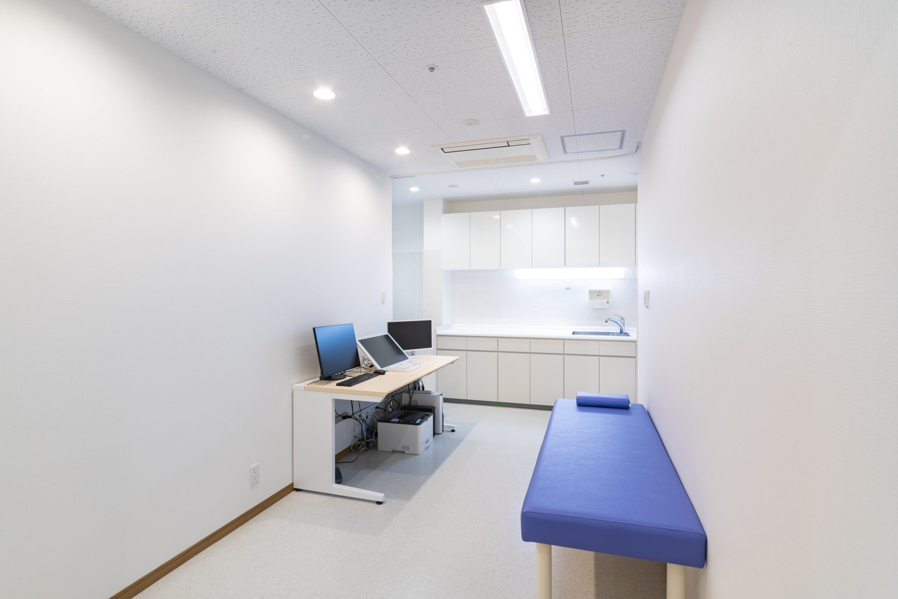 診察室、レーザー室、暗室、明室検査室、レントゲン室、手術室など、必要なお部屋の数が多い大規模なクリニックであった為、ビル既存の壁や天井設備の解体を計画的に行うなど、少しでもスペースを多く確保する工夫を行いました。