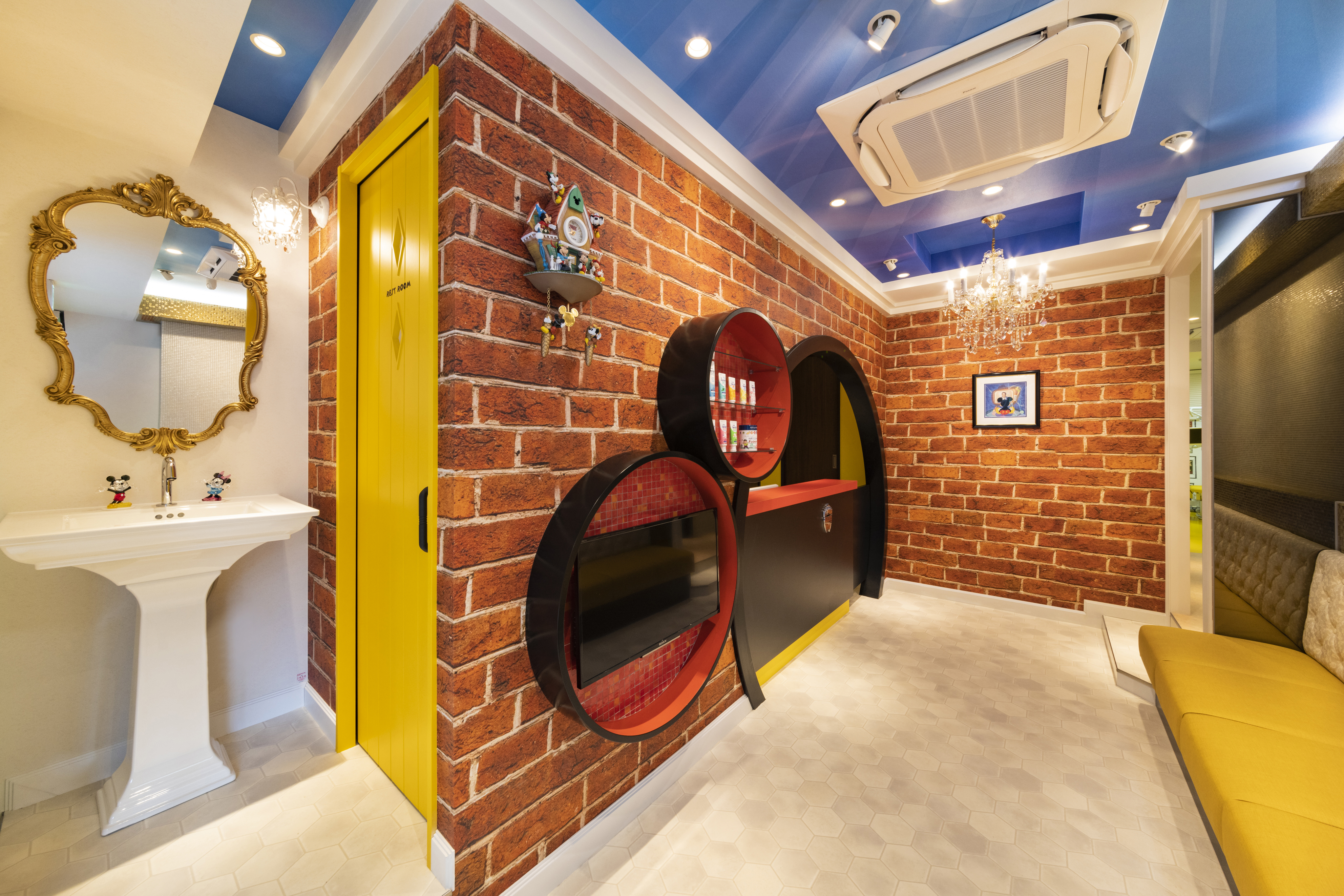 こどもたちにとって楽しい場所とは少し離れたところにある病院を、こども自ら進んで訪れる場所にしたいのがお客様の要望でした。そのためにクリニックの顔である待合と受付に造作家具や意匠を凝縮させ、診察室は部屋ごとに全く違った色遣いをすることで非現実的な空間を作り出しました。また、ファサード看板に装飾を施すことで商店街のどこからでも目立つ、まさにテーマパークのような印象を持たせました。