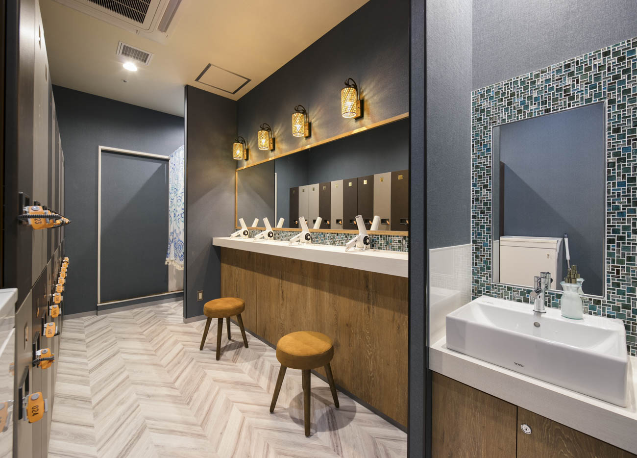 エントランスのガラス張りの床は、海をイメージしている力作です。
