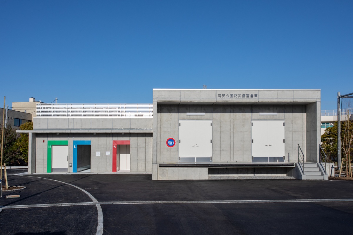 その公園内に防災備蓄機能の倉庫と災害時において利用可能な災害時対応屋外トイレを建築。
