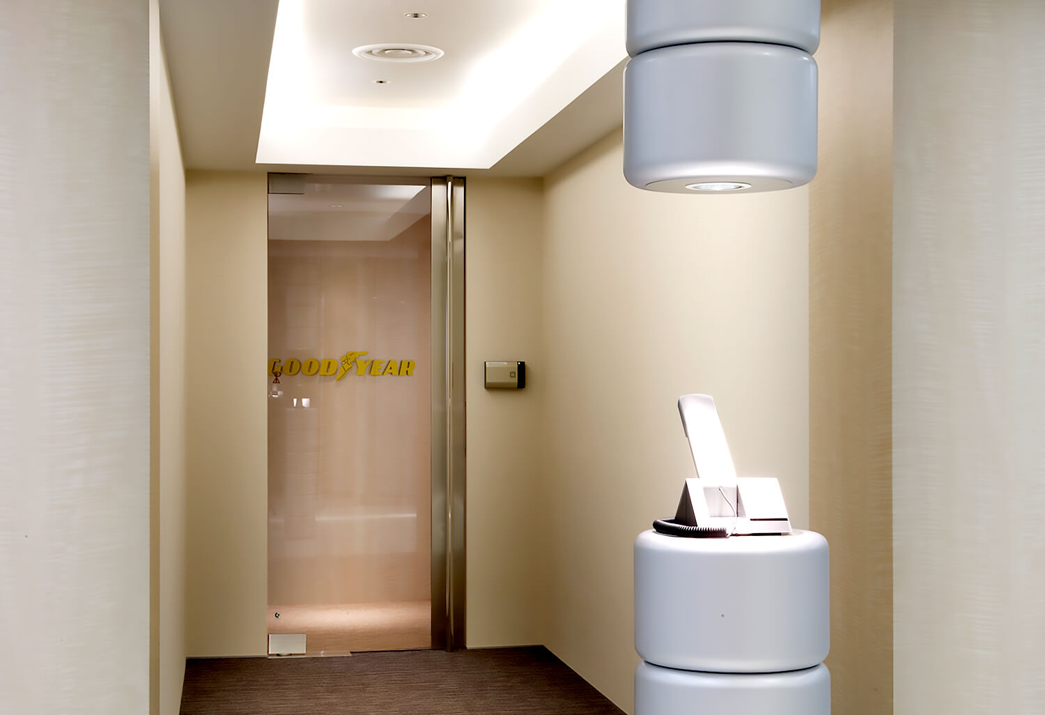 外資系オフィスのロビーを一新したいとのご要望から、企業イメージに合わせたオブジェを施してインパクトを与えるインテリアに一新。