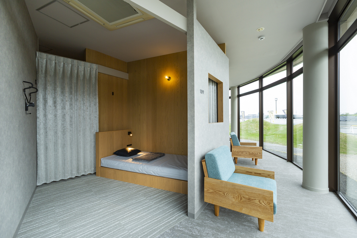 琵琶湖から車で5分ほどに位置する北近江リゾートの温浴施設のドライエリアの改装を行いました。琵琶湖を一周する約200kmの長距離サイクリングルート【ビワイチ】から近い位置にあり、ビワイチに挑戦される方の休憩スポットとしても利用されています。近隣のお客様はもちろん、お客様がロードバイクと一緒に休憩出来る部屋やくつろげるラウンジを新たに設けました。温泉・レストラン・ラウンジと併設され一日ゆっくりと出来る空間となりました。