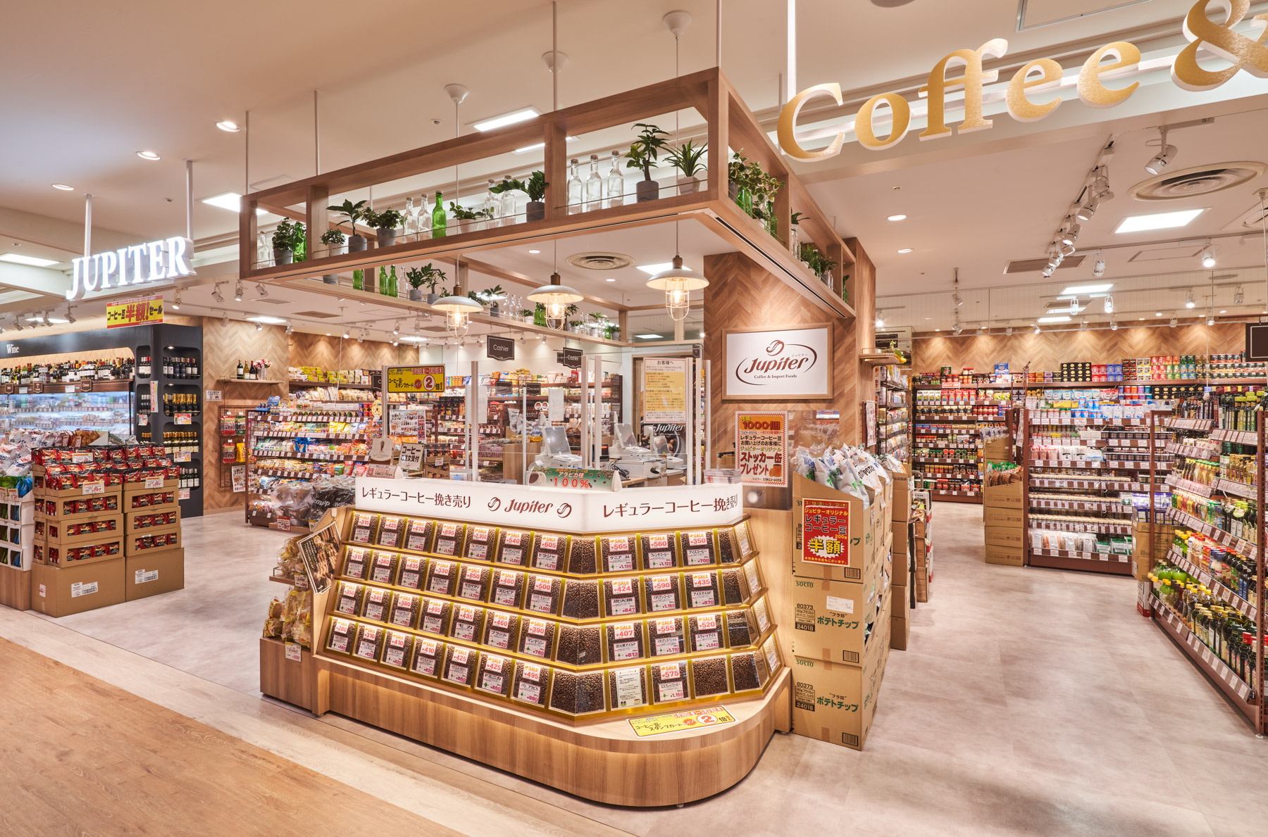リニューアルに伴い、自社焙煎コーヒー豆の挽売り、輸入食品、輸入菓子を取り扱うジュピターコーヒーがオープンしました。