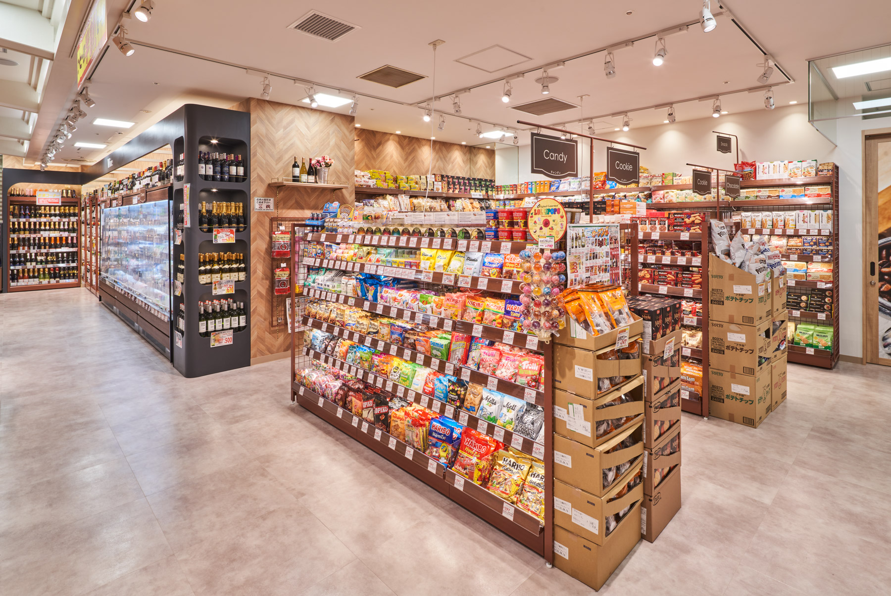 従来のデザインではなく、地域に合わせカジュアルな北欧風の要素を取り入れたデザインで展開。ワイン売り場も大きくペースを確保し、お客様にわかりやすいサイン計画・陳列方法でお店側にとっても売りやすい売り場づくりを実現しました。