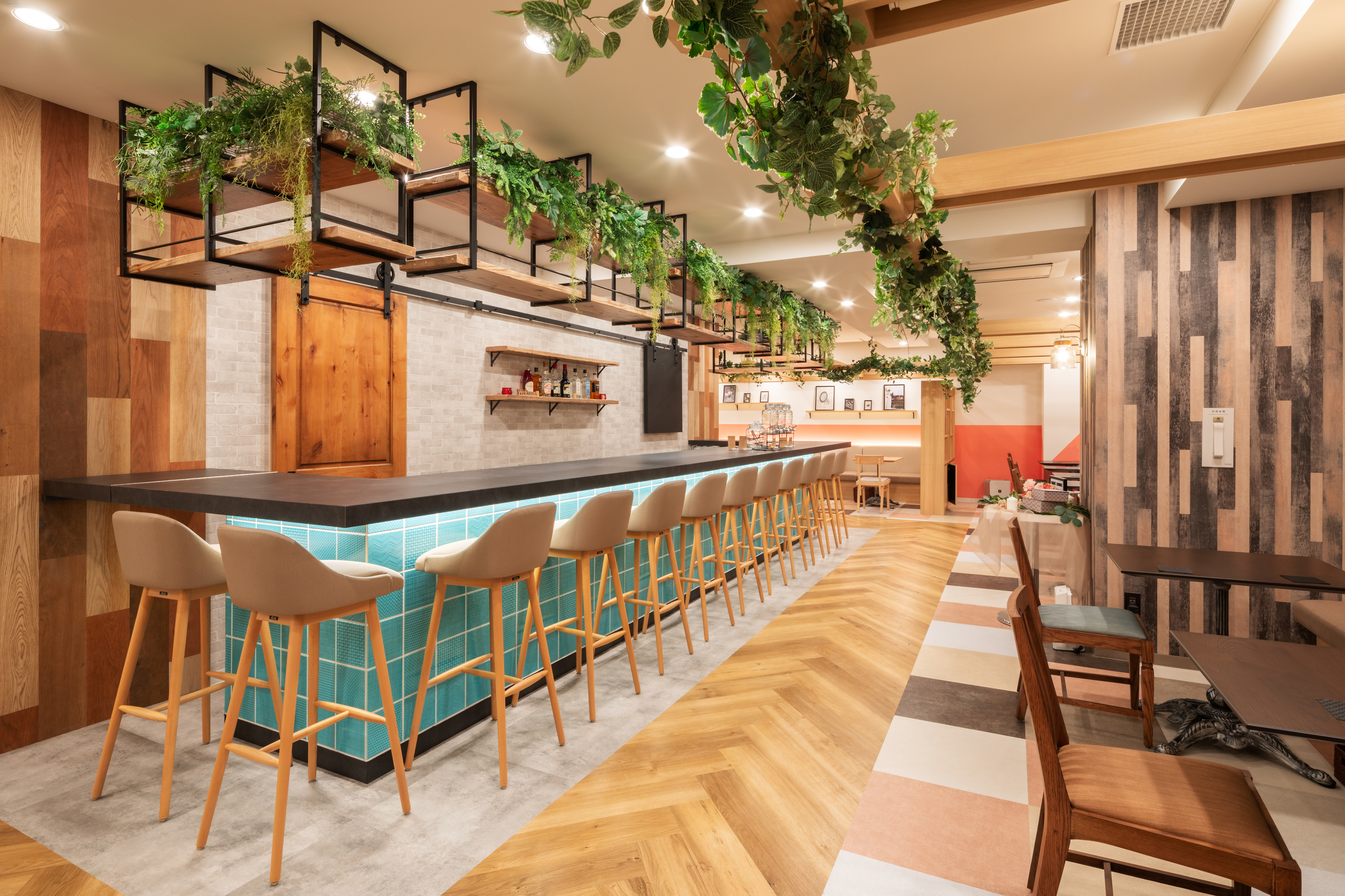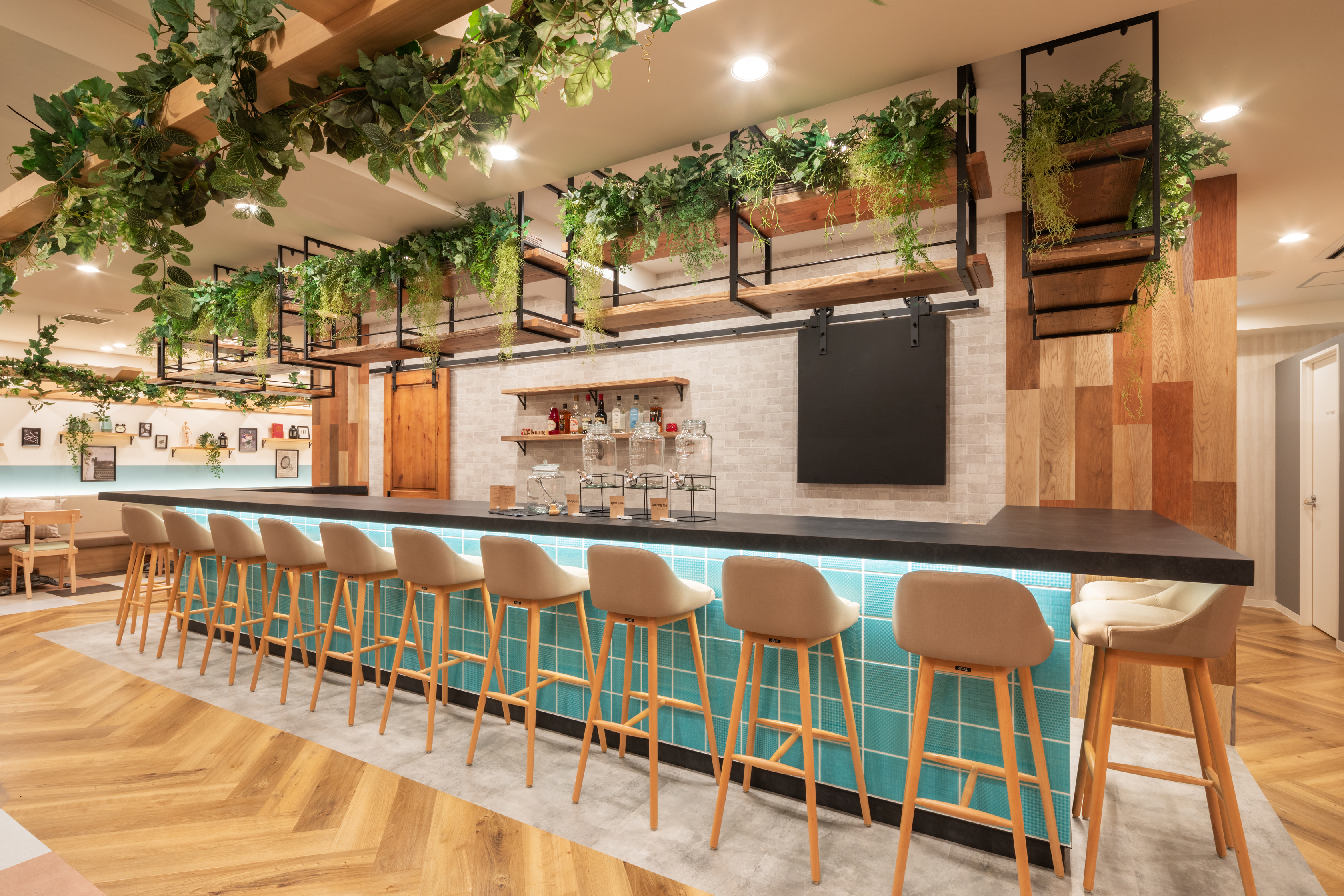 明るい木目と植栽を多く使用しナチュラルで親しみやすいアットホームな空間演出をしております。