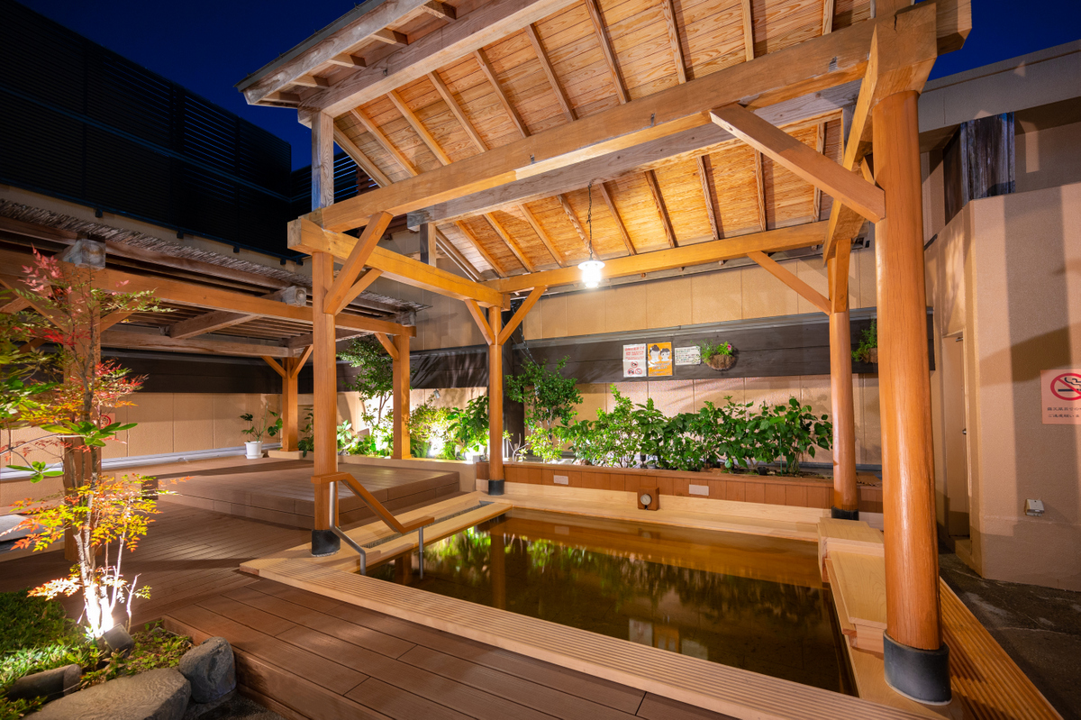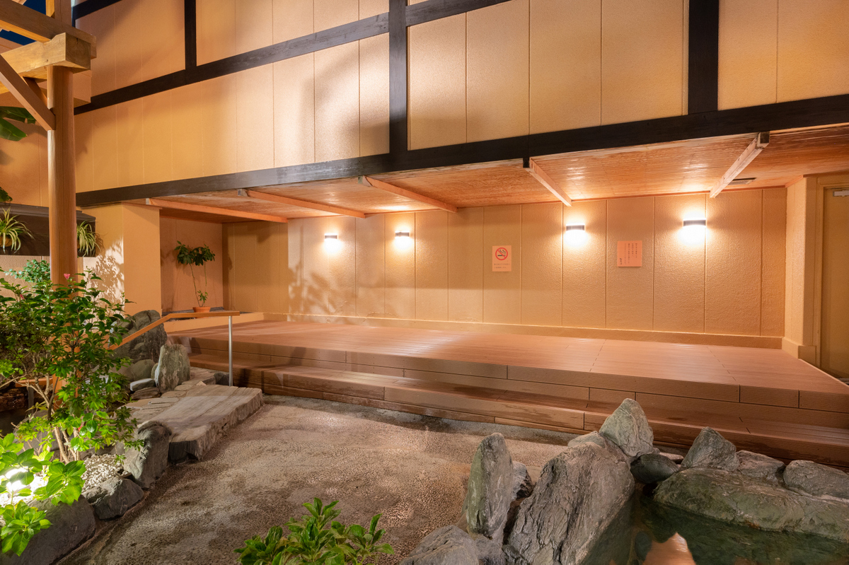今回の改装工事では男女の内湯と露天風呂・サウナ・ウッドデッキの改装、外壁の塗装、設備機器の入れ替え(エアコン、ボイラーなど)を行いました。